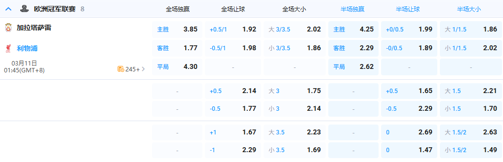 【1点45分 欧冠 加拉塔萨雷 vs 利物浦】