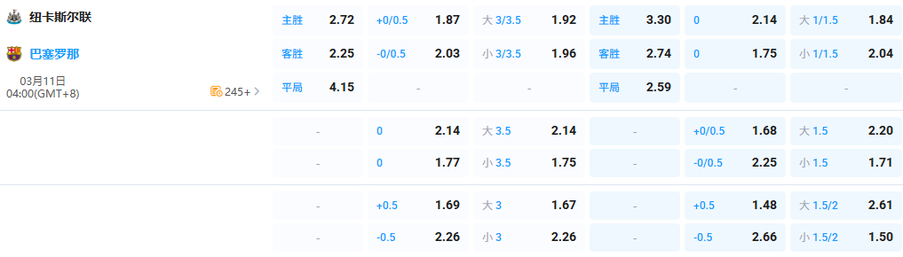 【4点00分 欧冠 纽卡斯尔联 vs 巴塞罗那】