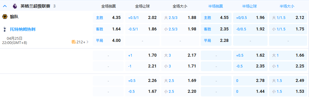 【22点整 英超 狼队 vs 托特纳姆热刺】